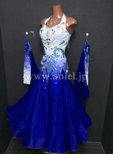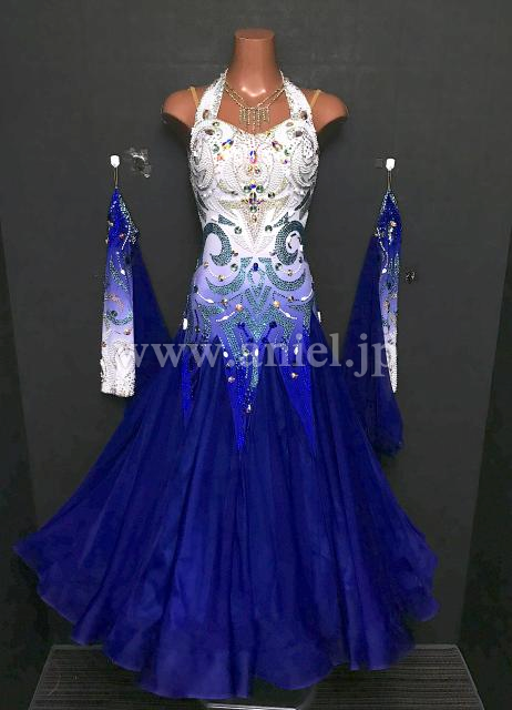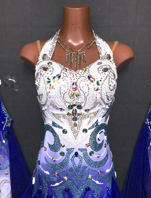 ホワイトから濃いブルーへのグラデーションが美しいドレスです。