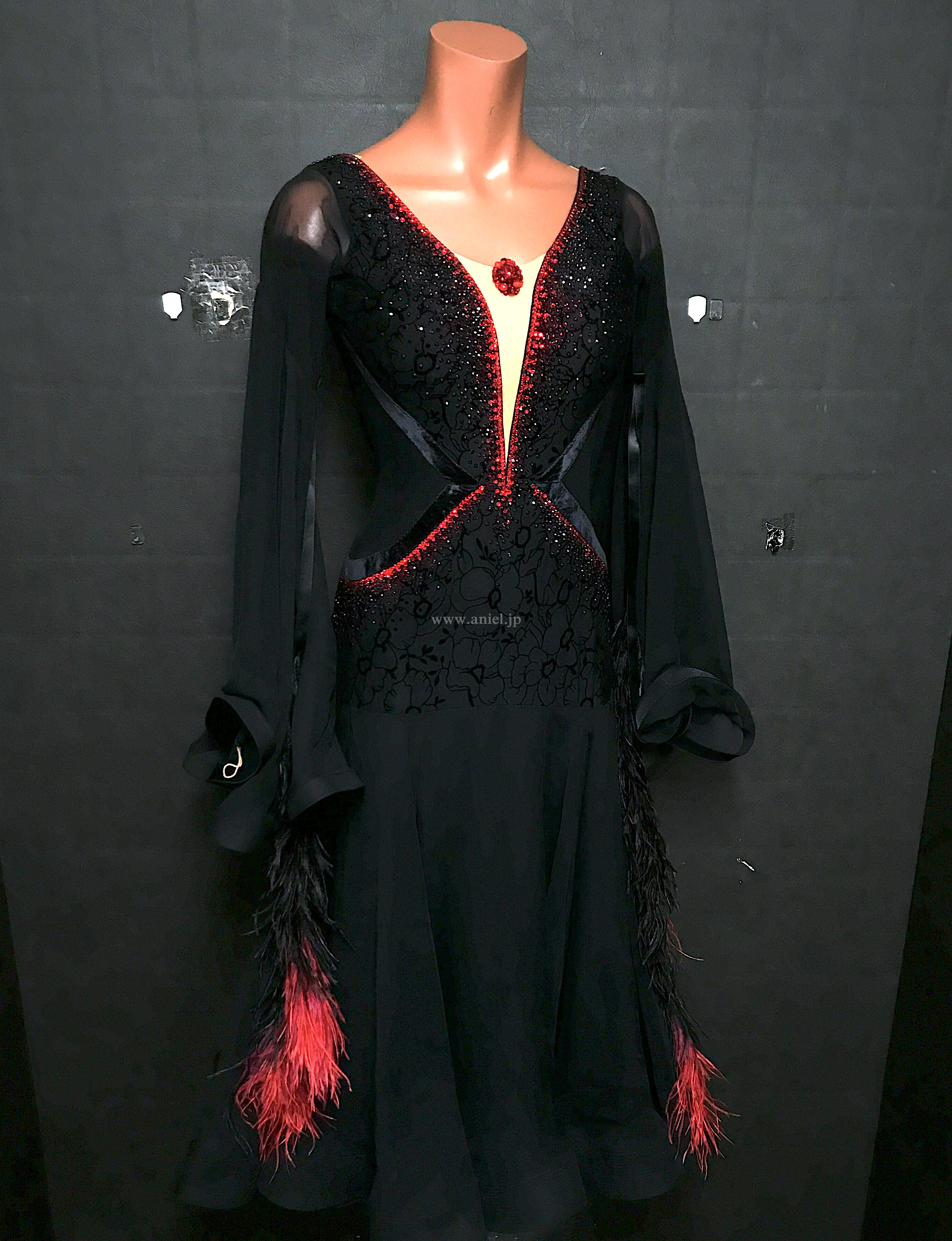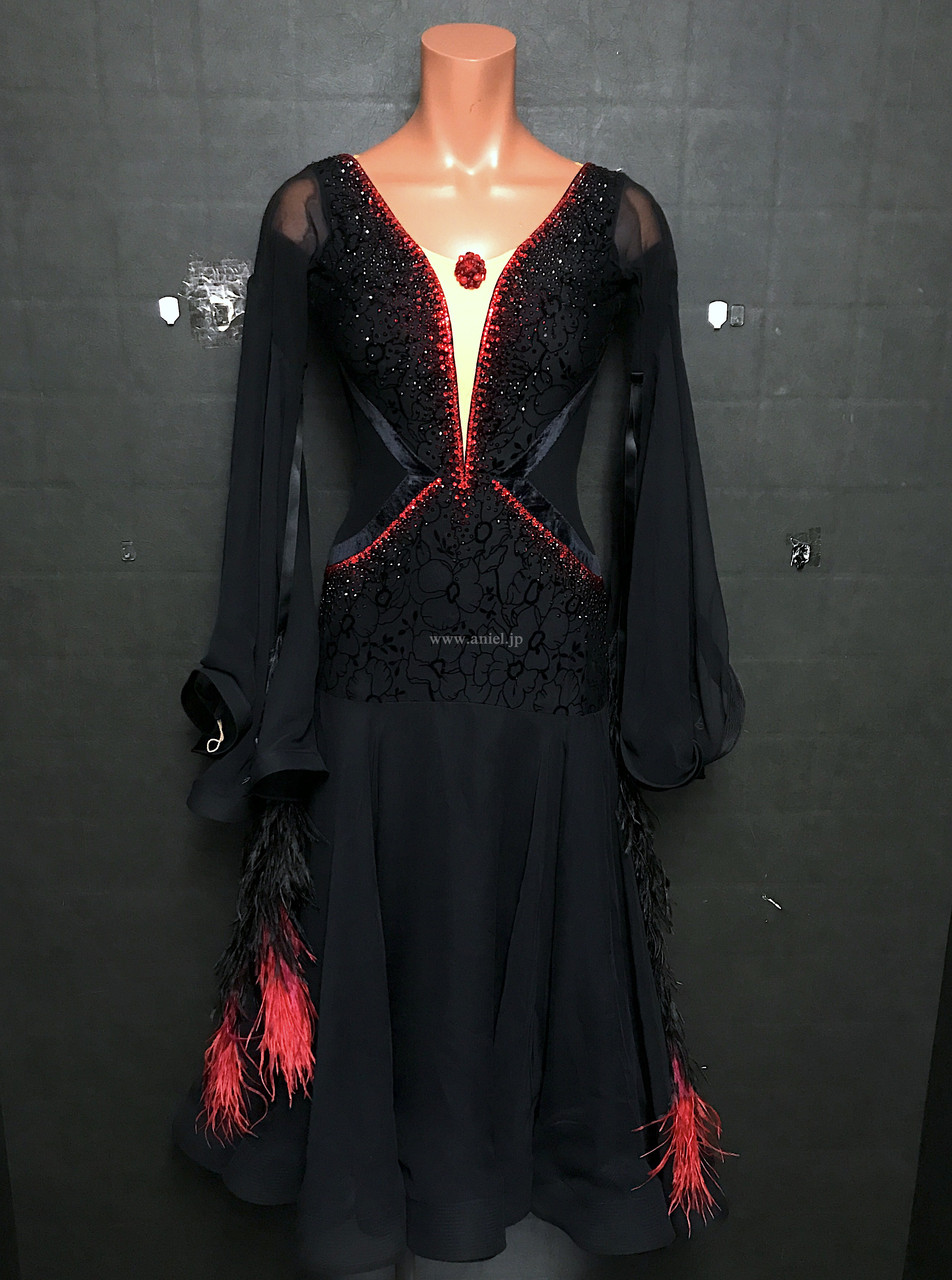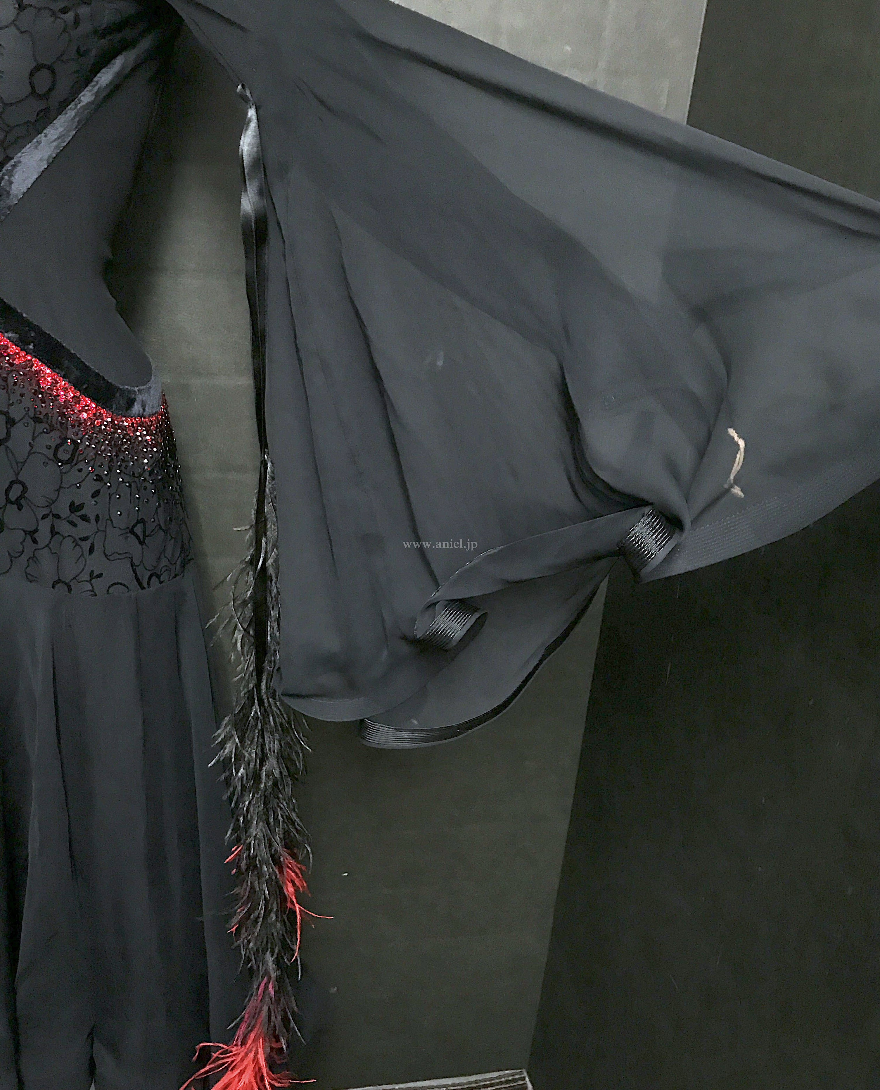 ベルスリーブの袖には羽根のフロートが付けられています。