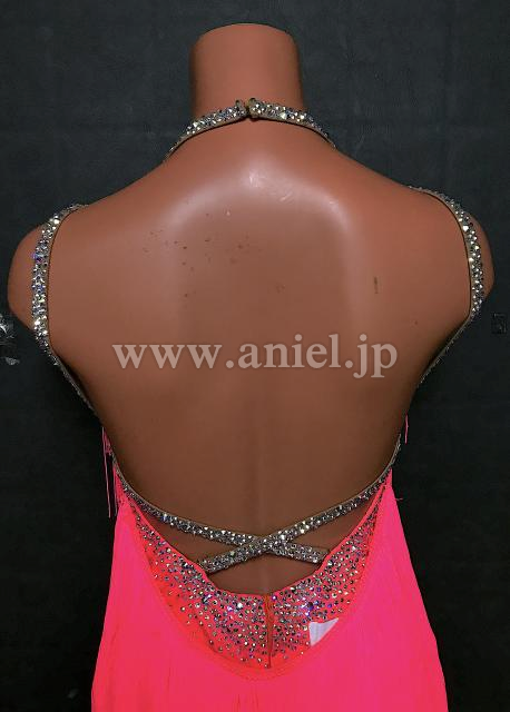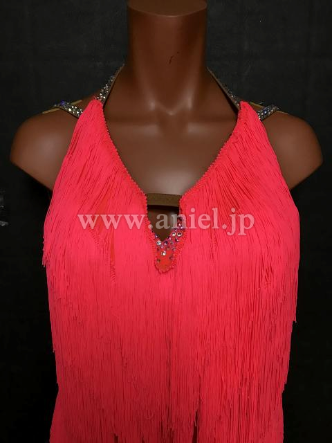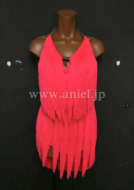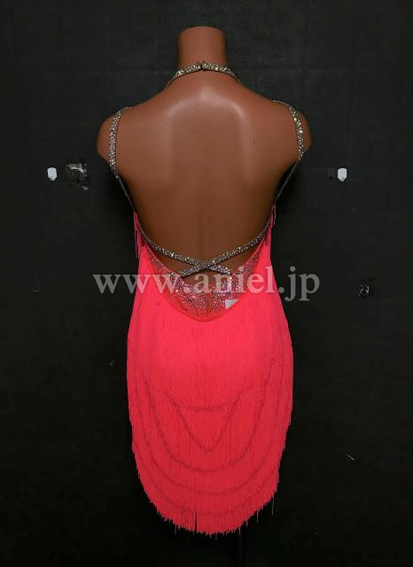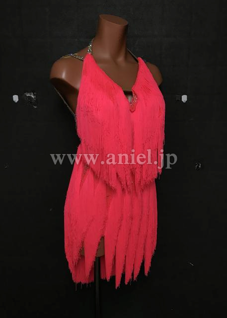 鮮やかなピンクのフリンジが全体でよく踊るドレスです。