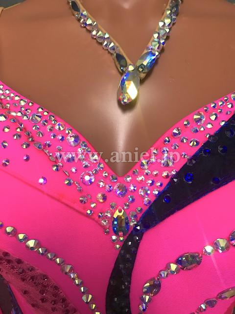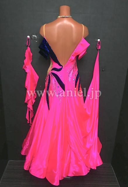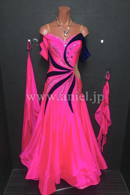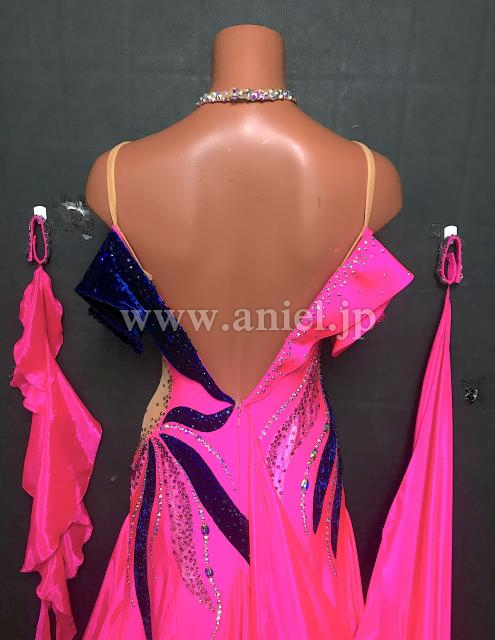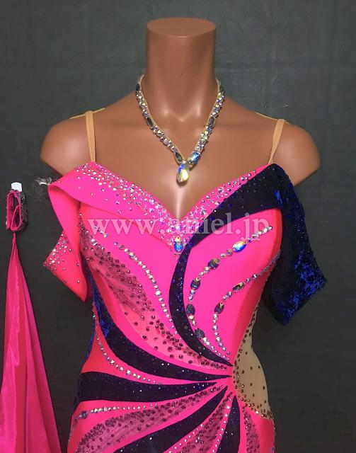 ショッキングピンクにネイビーベルベットの切り返しがおしゃれです。