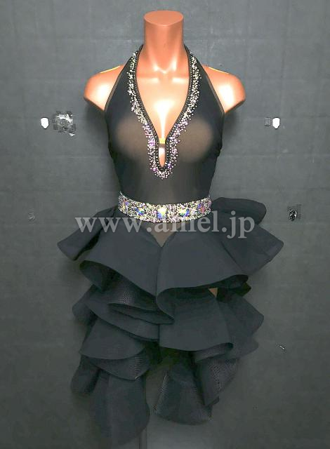 ボリュームのあるフリルスカートはサイドが空いていて脚が見えスタイル良く見せてくれます。
