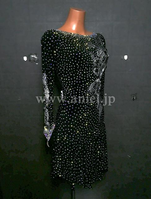 黒のボディにたくさんのストーンが輝くドレスです。