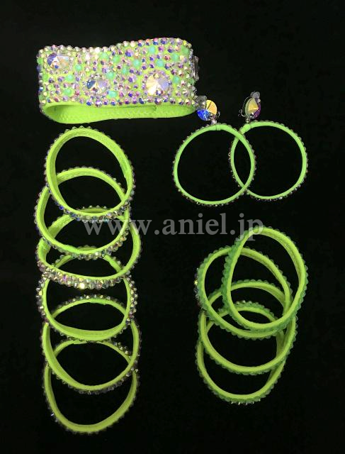 ストーンで飾られたイヤリング、バングル付属。