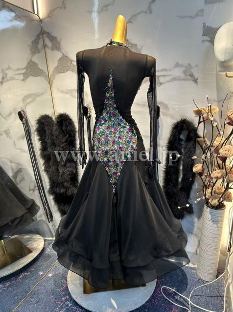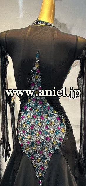 黒のボディにカラフルなストーンがびっしりのドレスです。
