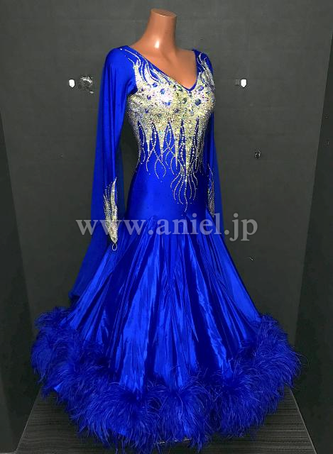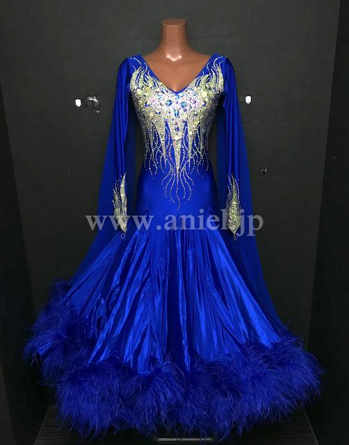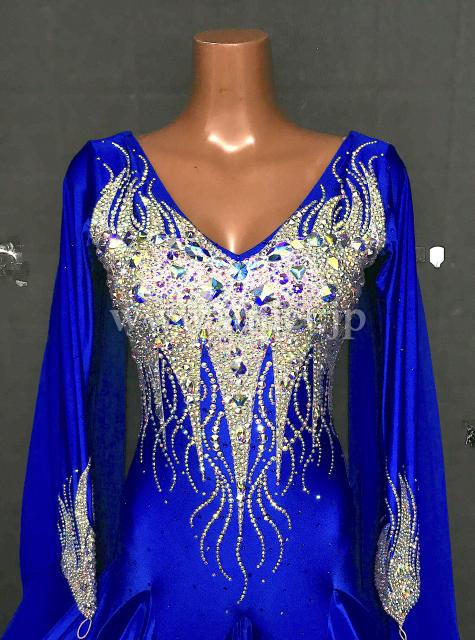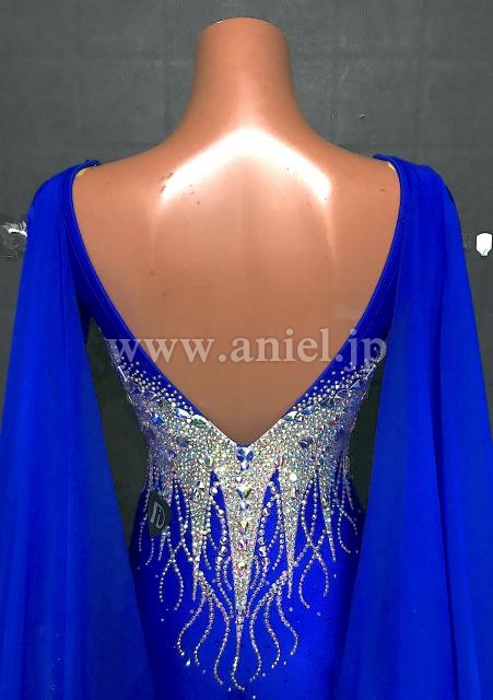 映えるロイヤルブルーカラーに上半身のオーロラびっしりの装飾が豪華です。