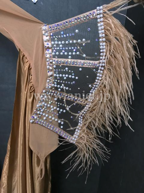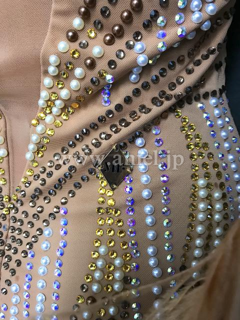 ベージュベースのボディがおしゃれなドレスです。