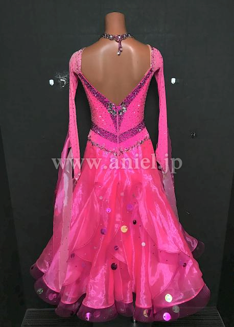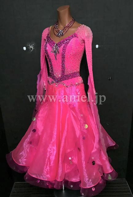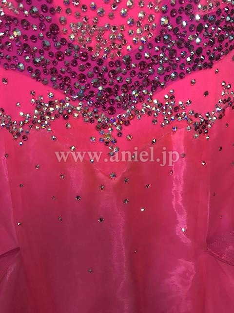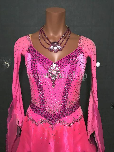 鮮やかなピンクのドレス。