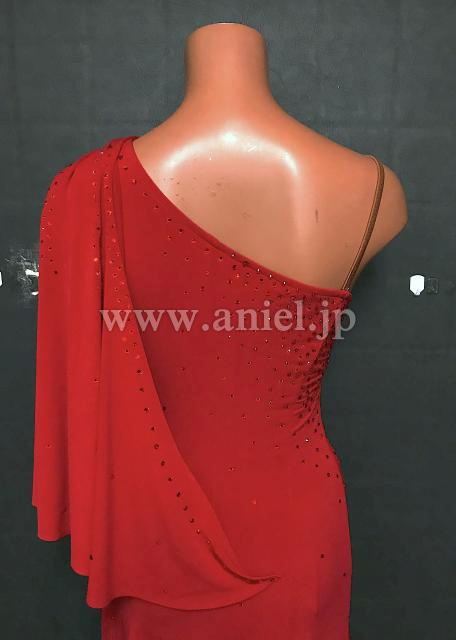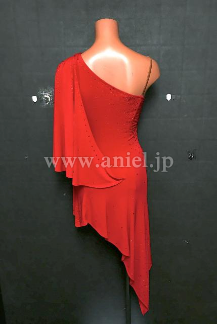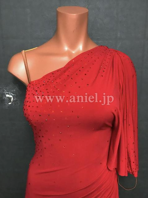 肩のドレープに斜めカットラインがおしゃれなシンプルドレス。