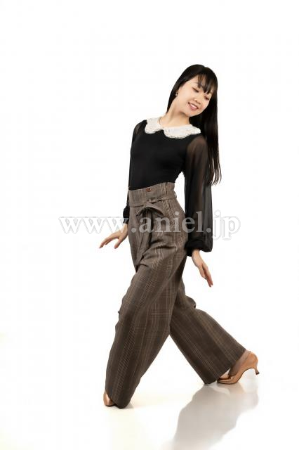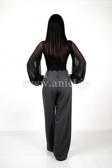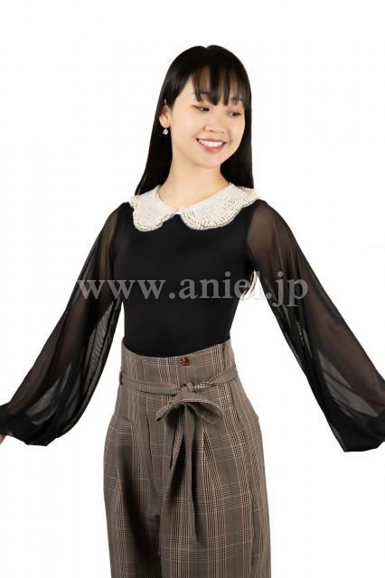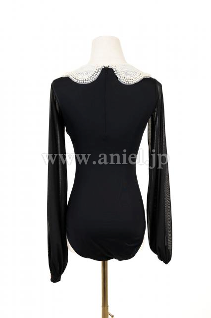 上品なパール襟が際立つエレガントなレオタードトップス。
