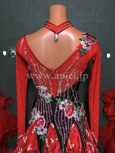 ピンク赤の花柄モチーフが可愛いデザイン。