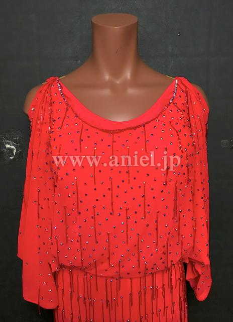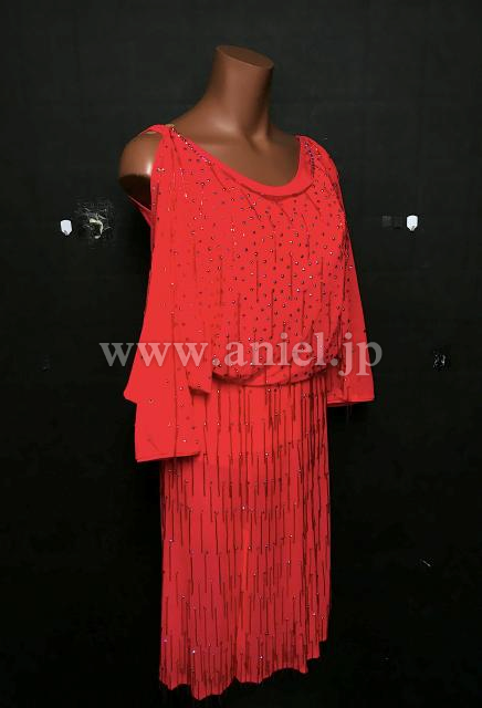 ビーズフリンジがキラキラと揺れ、ドレープが踊るドレス。