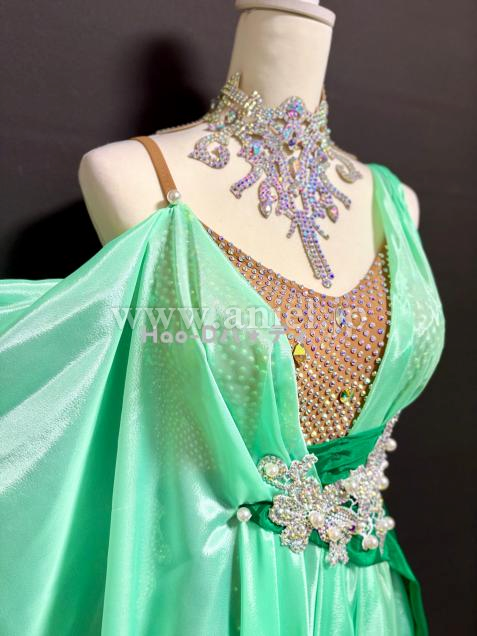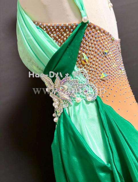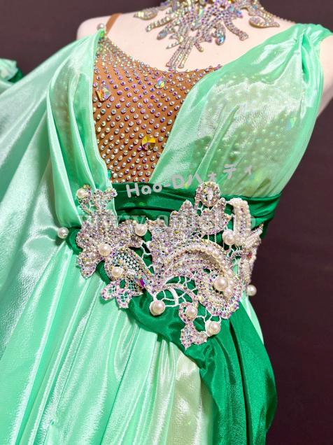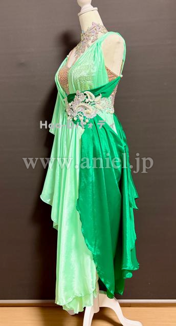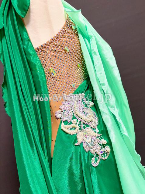 鮮やかなミント&グリーンのパールシフォンが、まるで森の風のように軽やかにふんわり揺れる