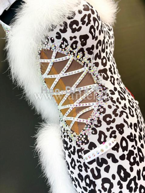 アニマル柄にフリンジ&ファーを組み合わせた躍動感抜群のラテンドレス