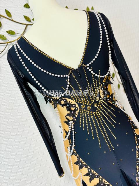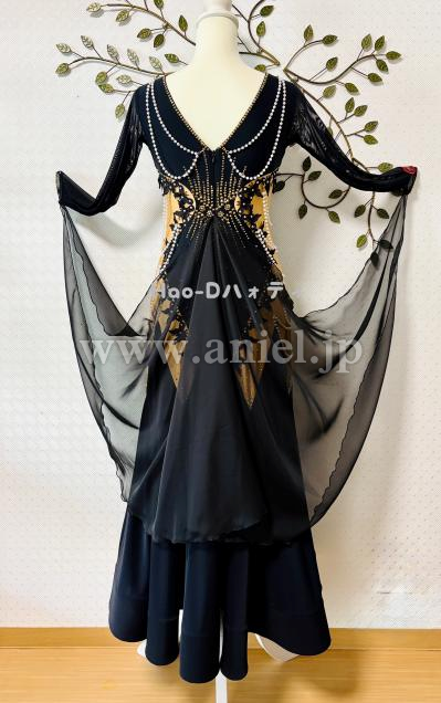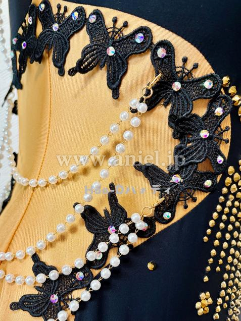 スカート裾には幅広いホースヘアを付けてAラインを綺麗に作り上げ、回転時に大きく広がる