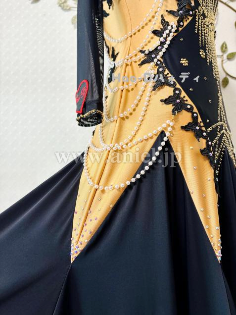 細見せカーブラインの両脇にパールチェーン(取り外し可能)を飾り、エレガントな印象を与える