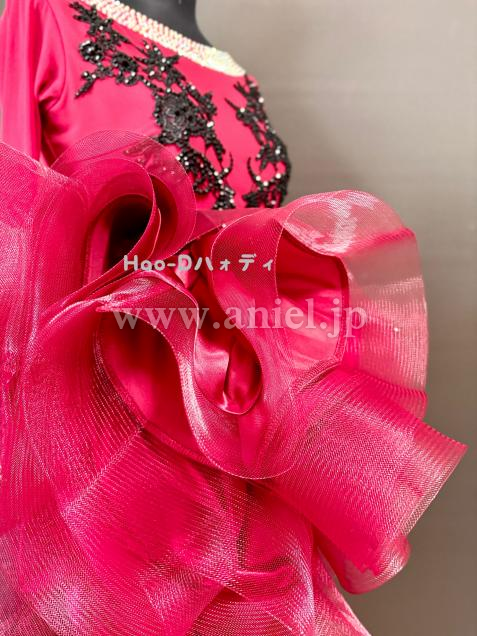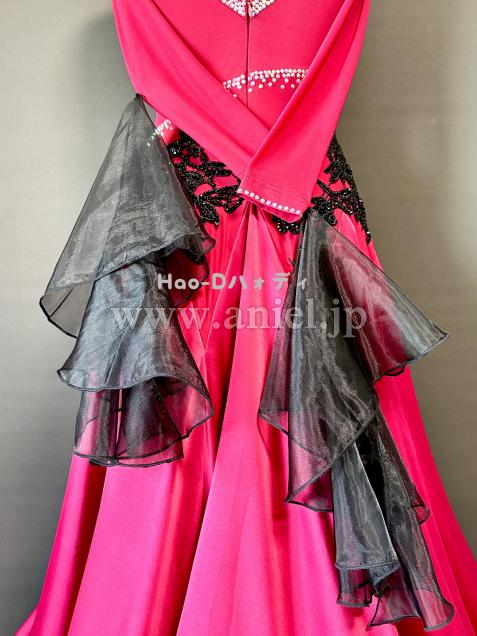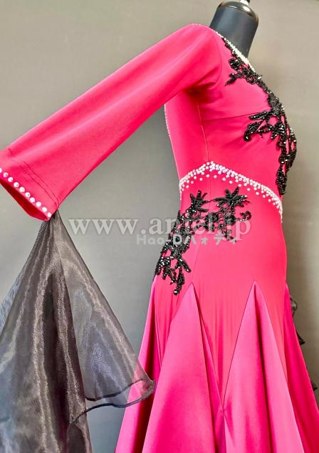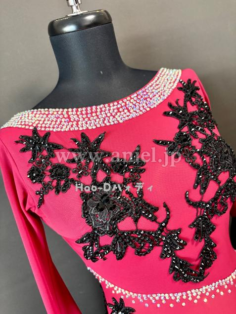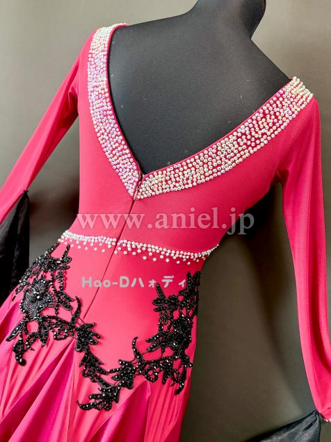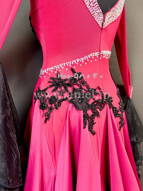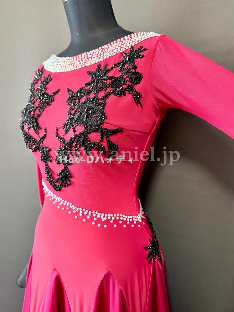 深みのあるワインレッドに繊細なブラックモチーフを装飾したドレス