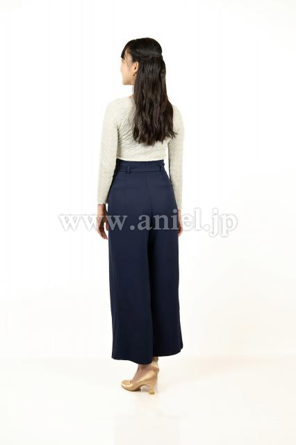 ハイウエストデザインのトラウザー。
