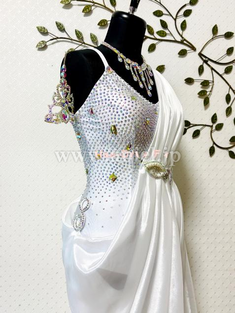 気品ある純白は照明の下で輝き、舞台やダンスフロアで存在感を放つ