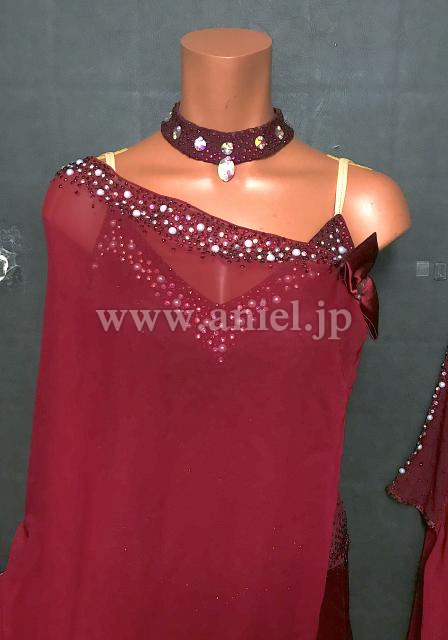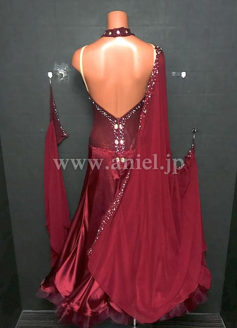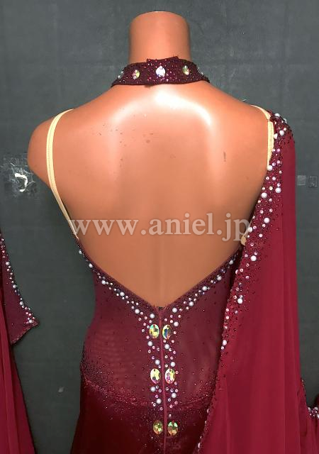 上品なボルドーカラーが落ち着いた雰囲気のドレスです。
