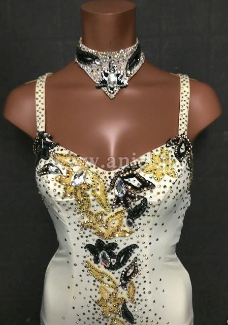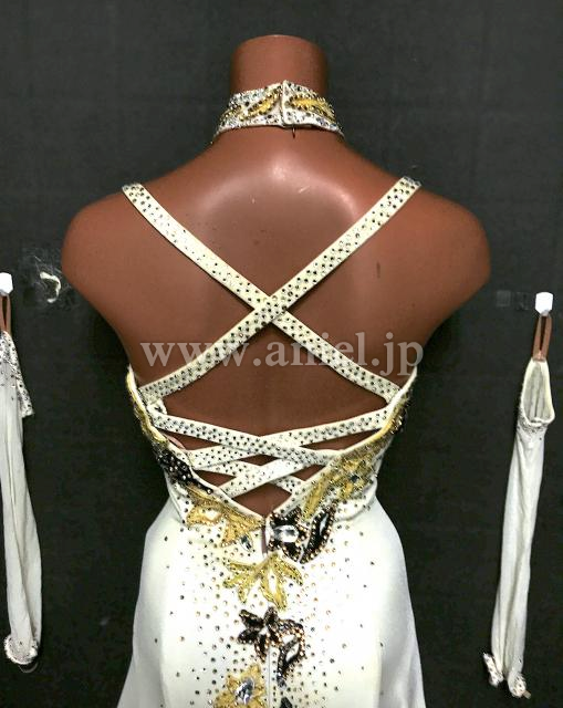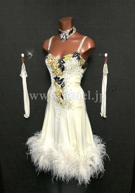 クリームにゴールド、黒のモチーフレースが装飾されています。