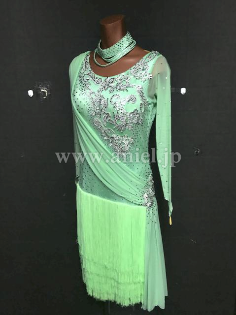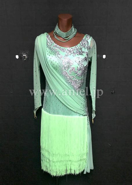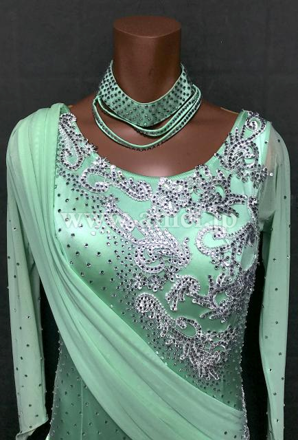 爽やかなペパーミントにシルバーの装飾が光るドレスです。