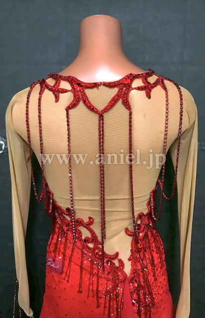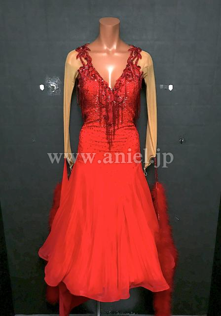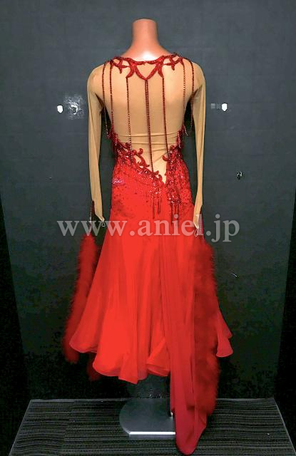 腕から垂れるボアのフロートが軽く踊るドレスです。