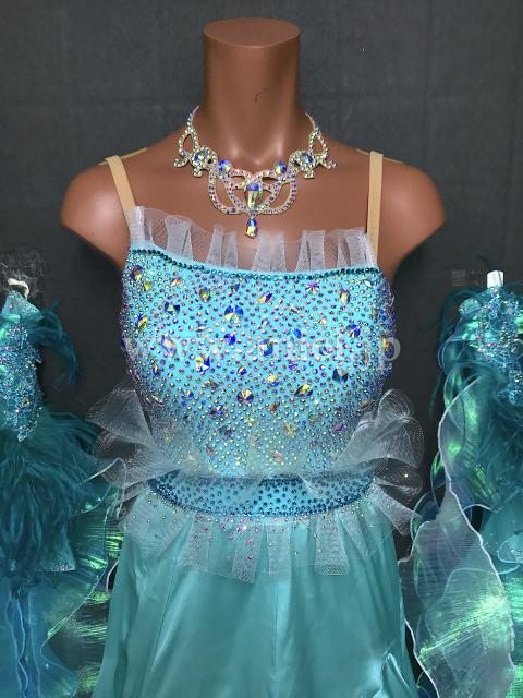 胸元、ウエストには立体のホースヘアフリルがあしらわれキュートなデザイン。