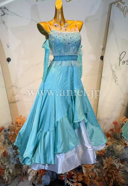 スリットからホワイトのインナースカートがのぞき、オーロラのギャザーフロート、リボンフロートが軽やかに舞います。