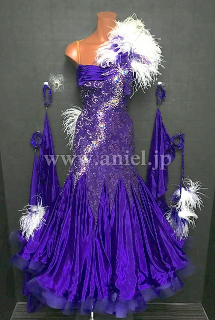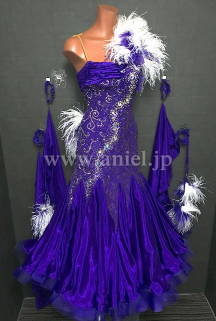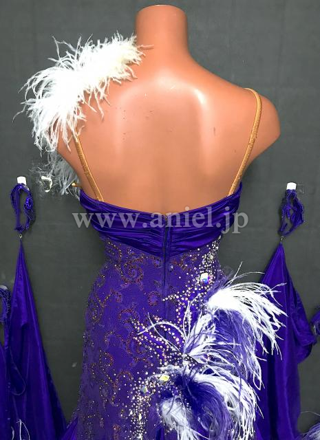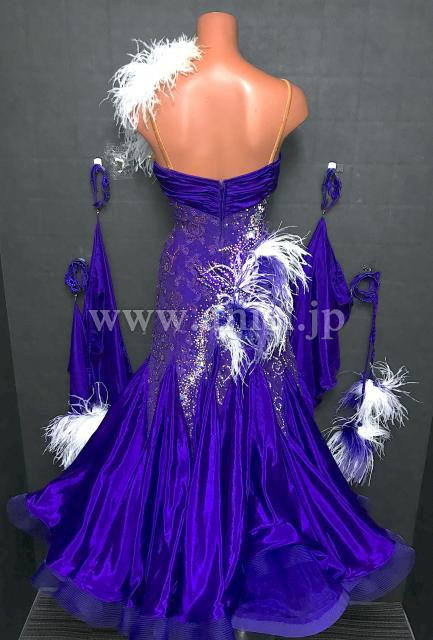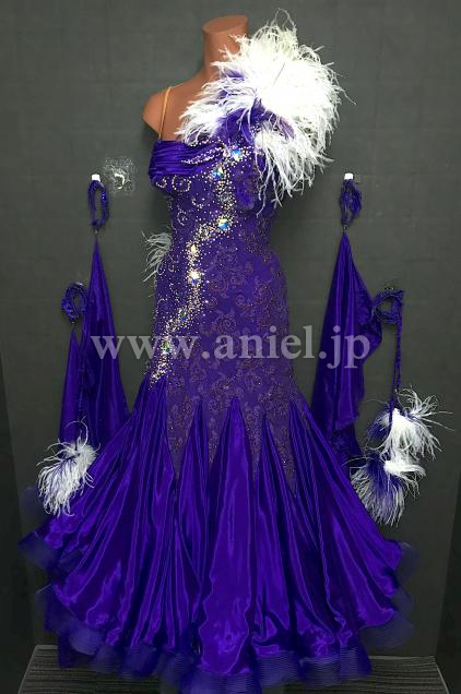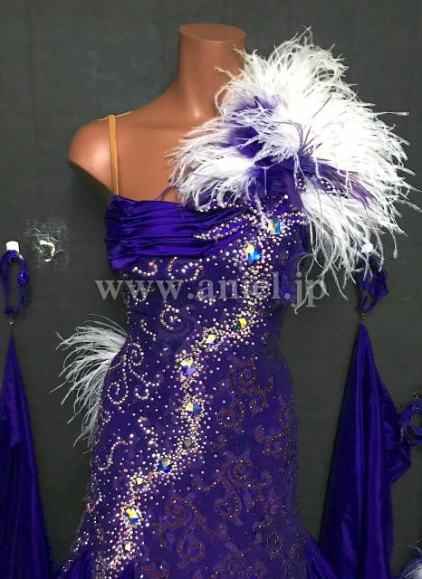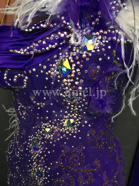 紫レースのボディにサテンスカートが華やかなドレスです。