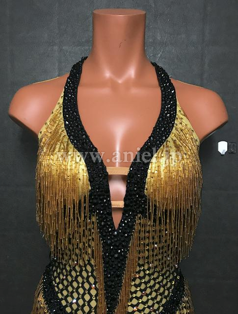 ゴールドのビーズフリンジがきらめきます。