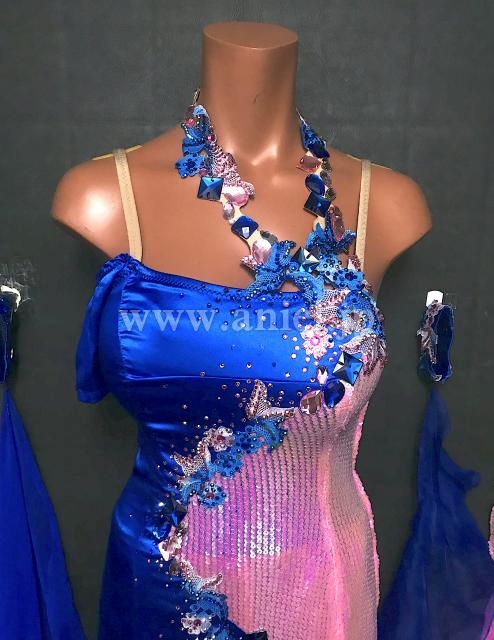 ピンクのスパンコール生地がキラキラと光るドレスです。