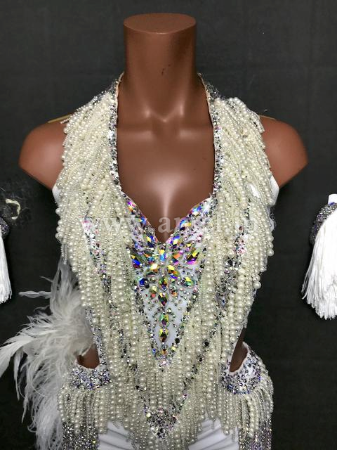 パールビーズ、大粒ストーンの装飾が豪華なドレスです。