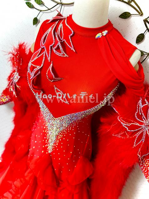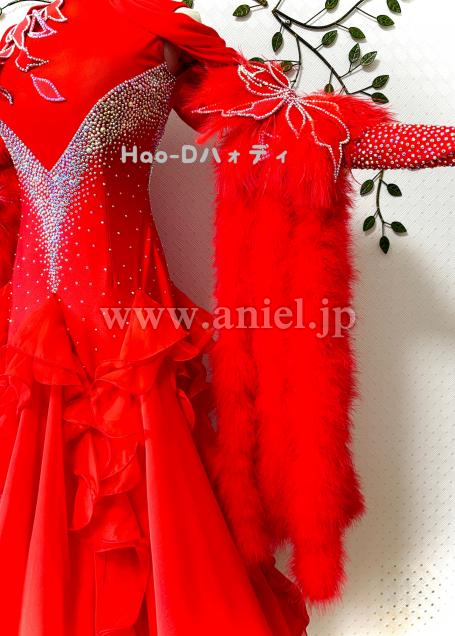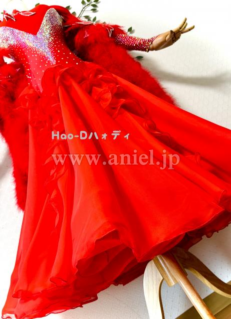 裾にホースヘアやワイヤーを付けてAラインを綺麗に作り上げ、ボリュームありながら軽くて踊りやすい