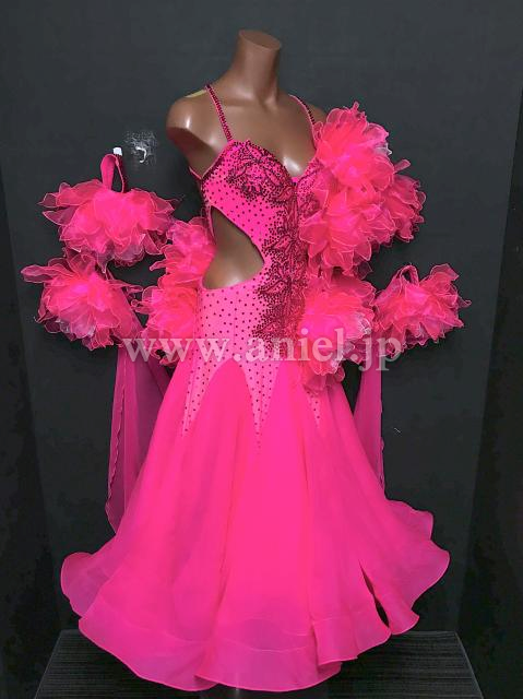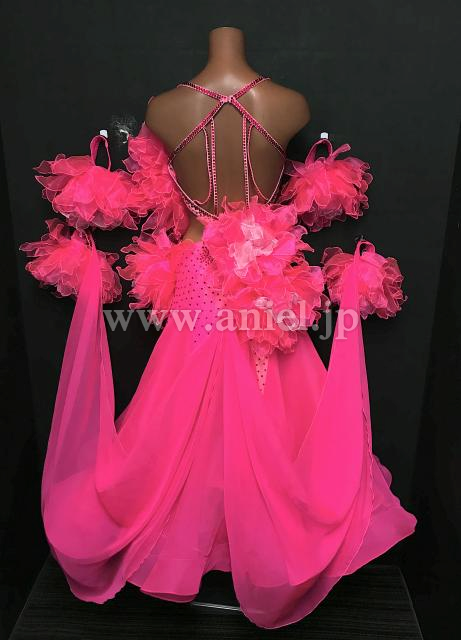 大ぶりなフラワーモチーフの装飾が目立つドレスです。