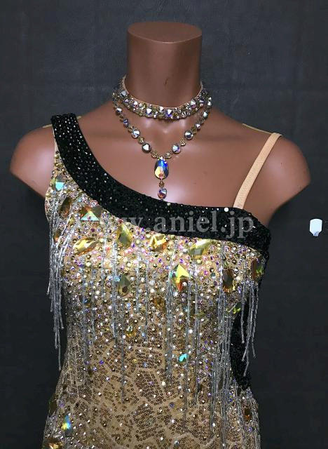 ゴールドスパンコールの生地がキラキラと輝きます。
