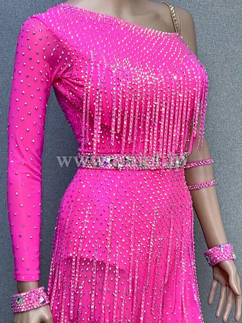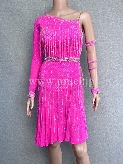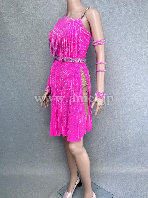 ドレス全体にラインストーンをあしらい、その上に更にラインストーンフリンジを重ねてあしらっているので、動くたびに輝きます。