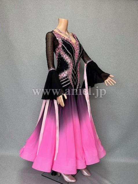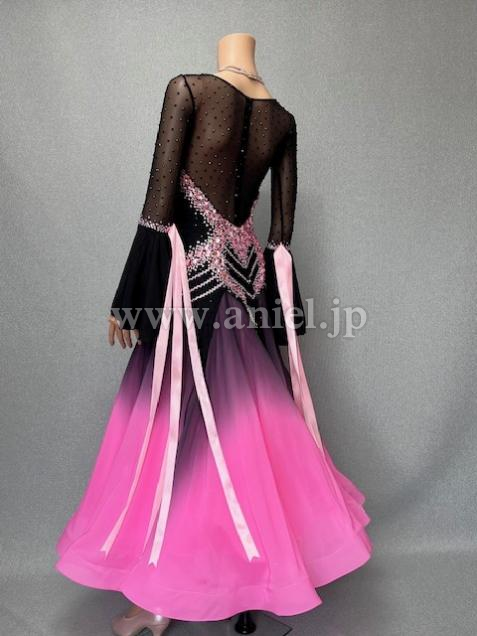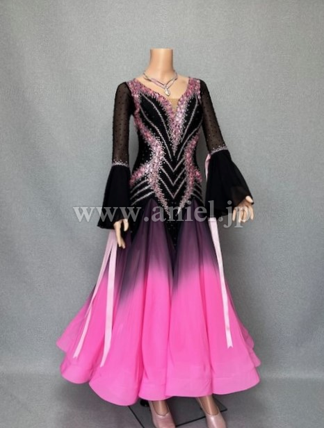 シックなブラックに華やぎのピンクストーンをふんだんに施したAラインドレス。