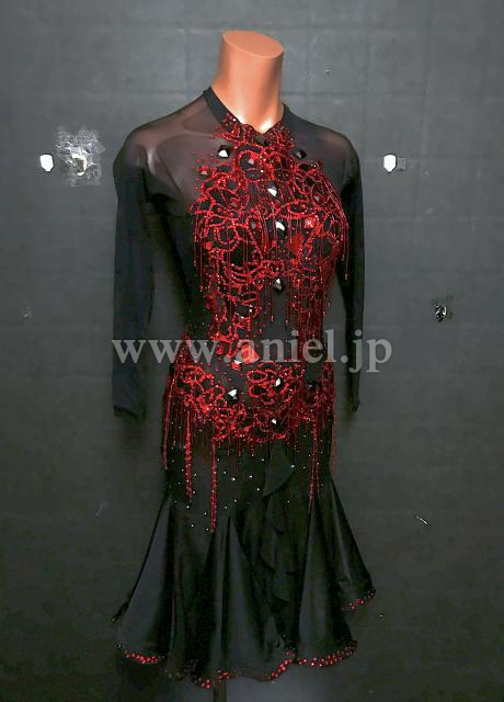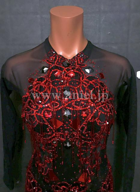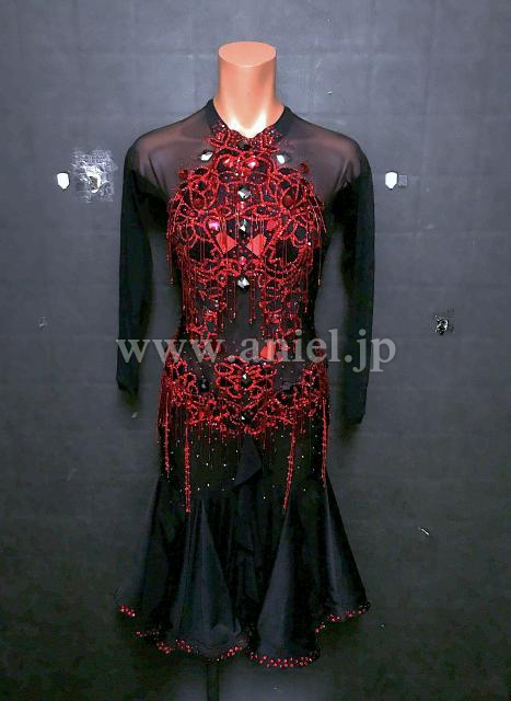 カラーストーン、ビーズフリンジの装飾が美しいドレスです。