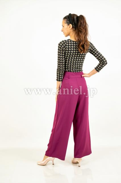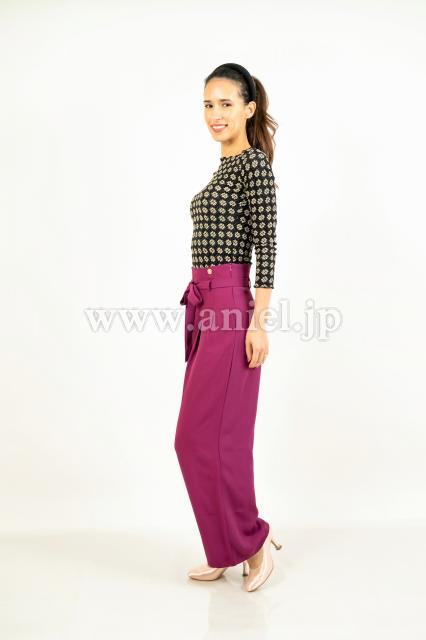 ハイウエストデザインのトラウザー。