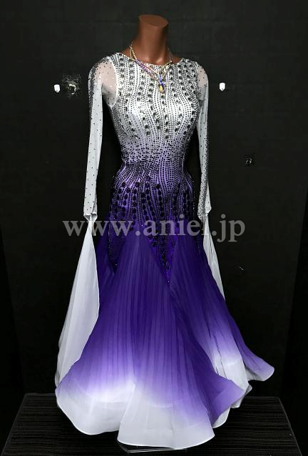 白から紫へのグラデーションが美しいドレスです。