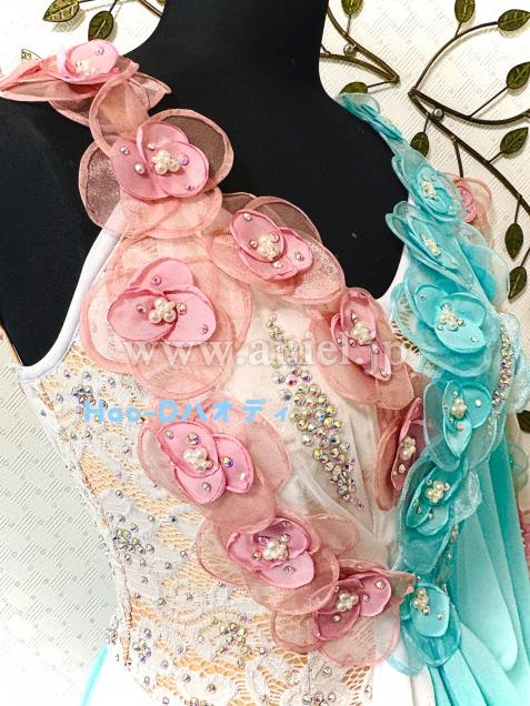 清楚なホワイトにピンクとミントブルーの花が咲誇る可憐なドレス
