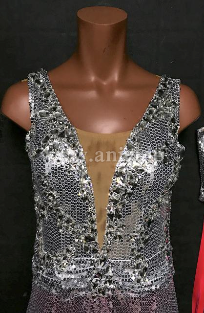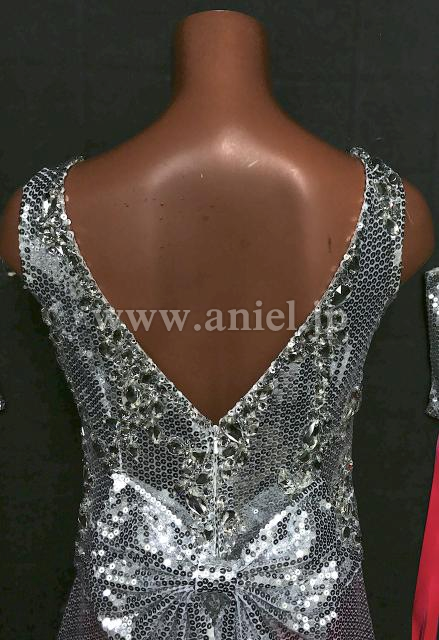 スパンコール生地のボディがフロアで光るドレスです。