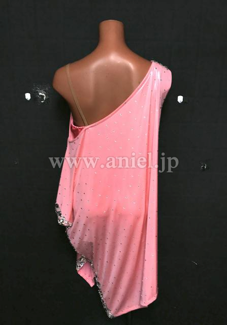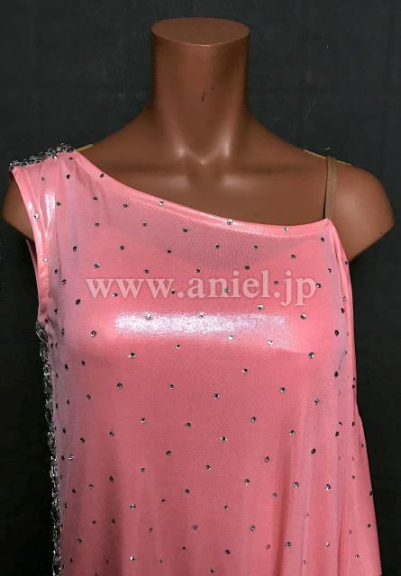 ピンクの光沢のある生地のチュニックスタイルのラテンドレスです。