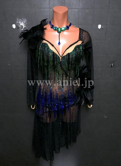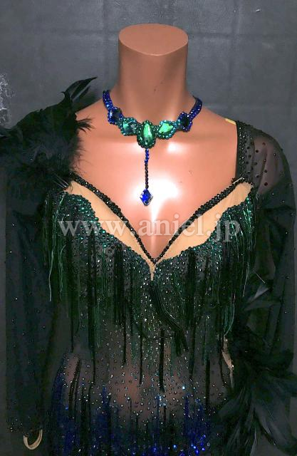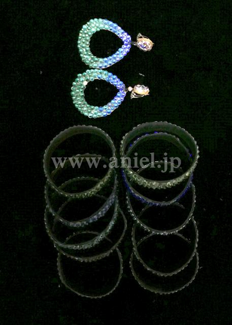 ベースは黒ですがグリーンやブルーのストーンが使われており