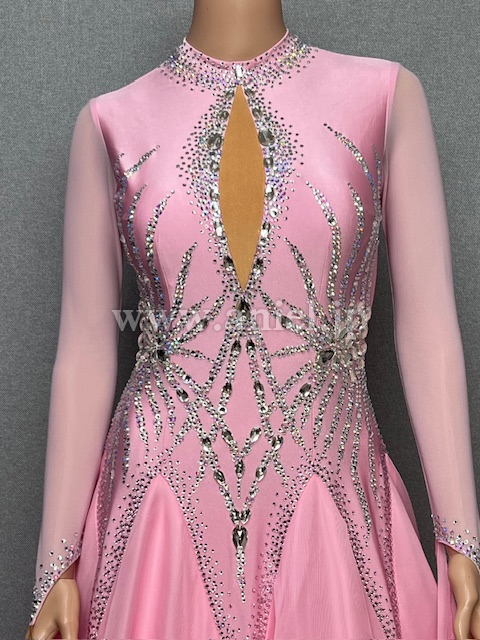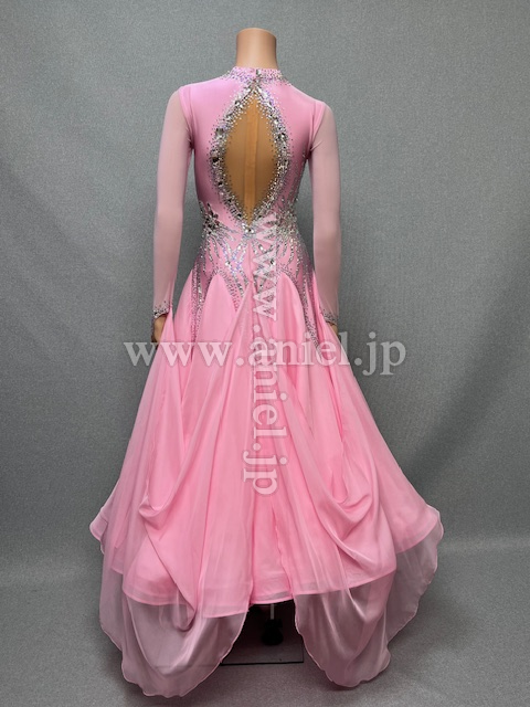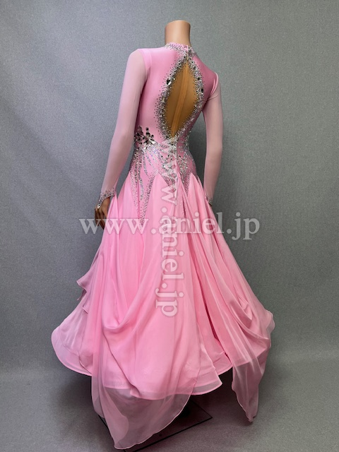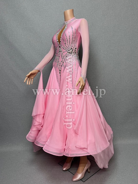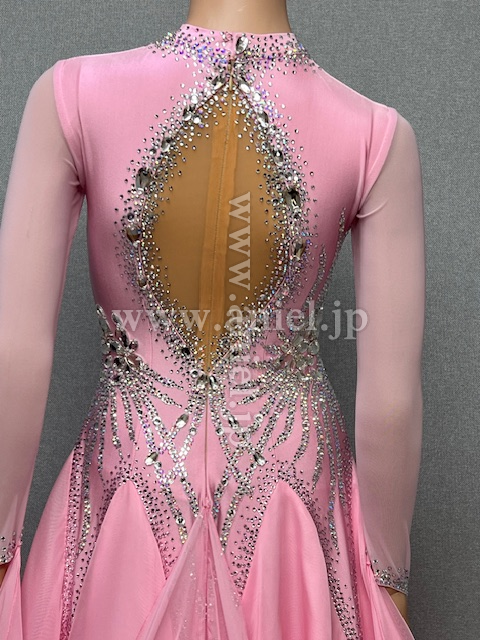 淡いピンクにストーンをふんだんにあしらった爽やかなドレス。