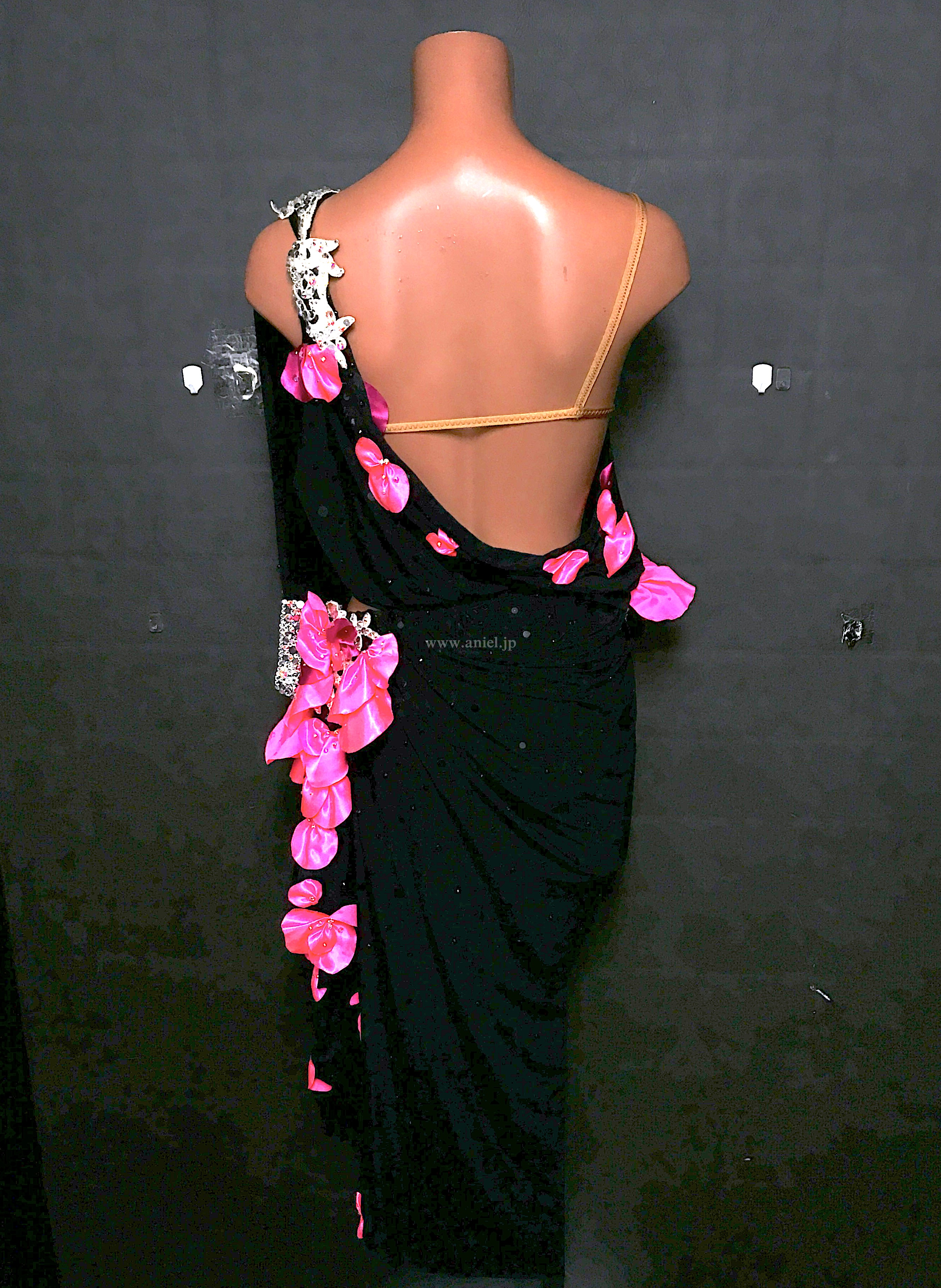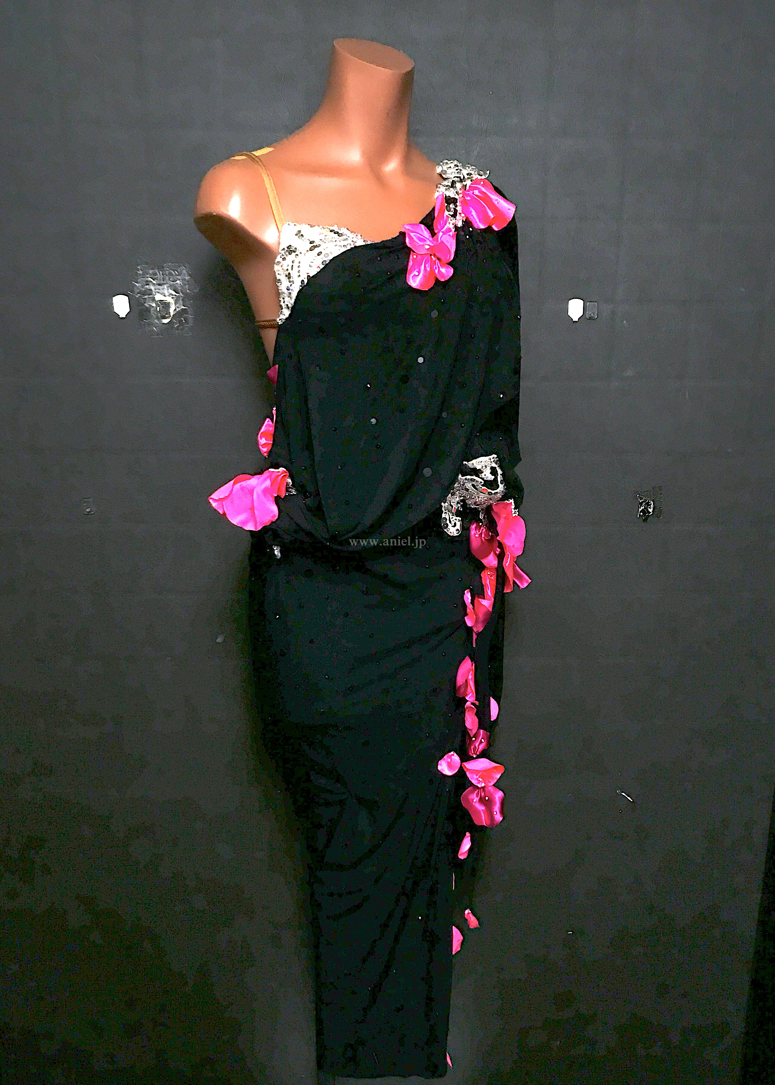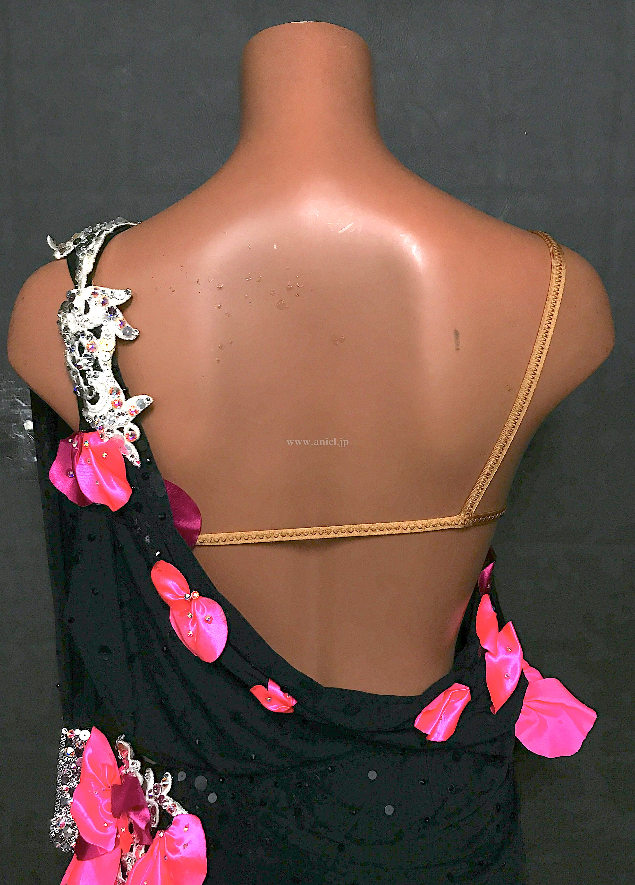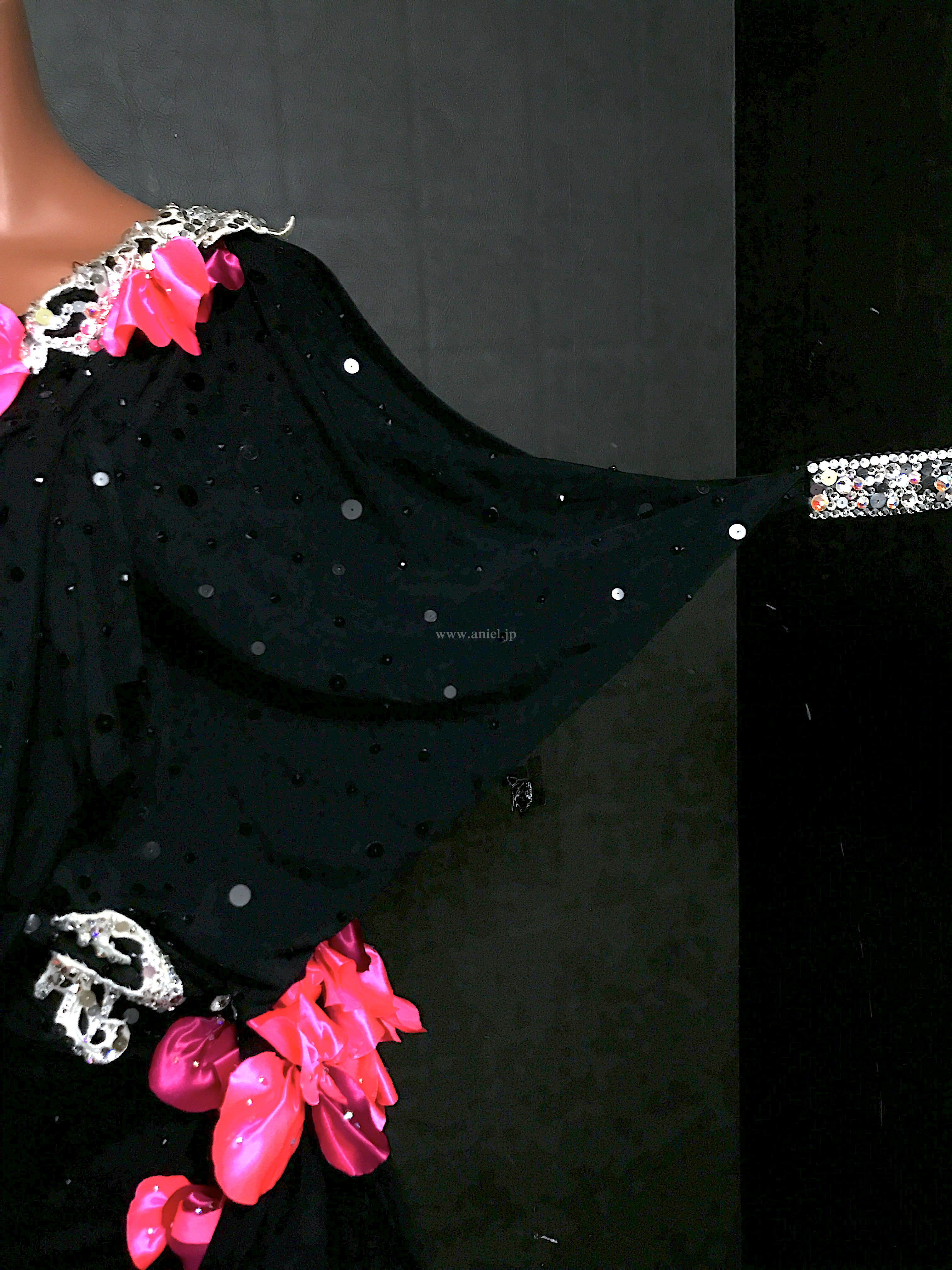黒のボディに明るいピンクの花モチーフが華やかです。