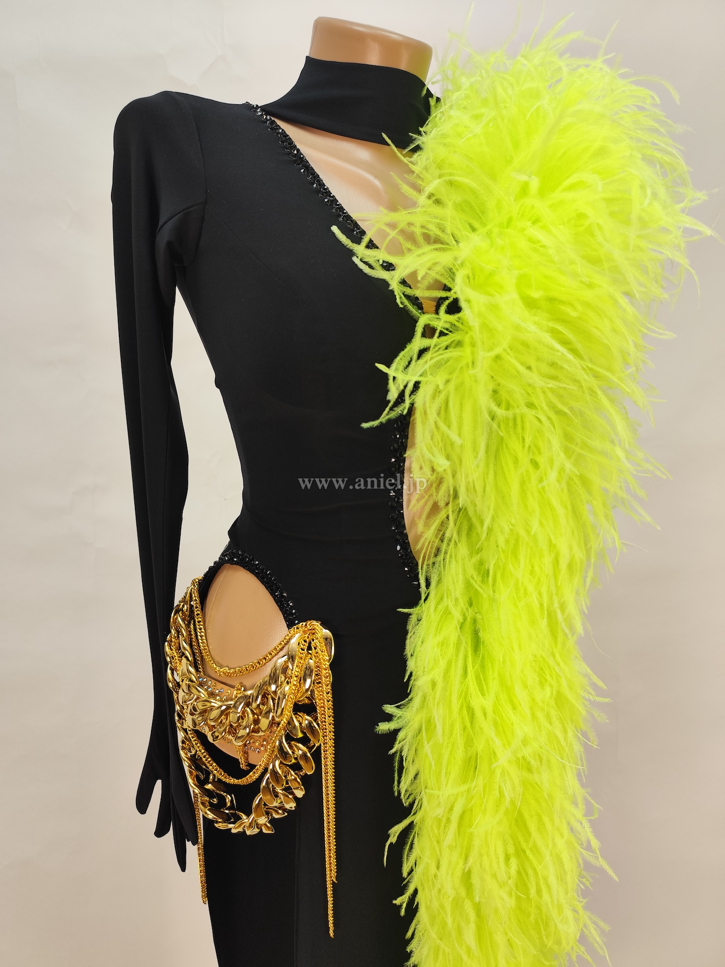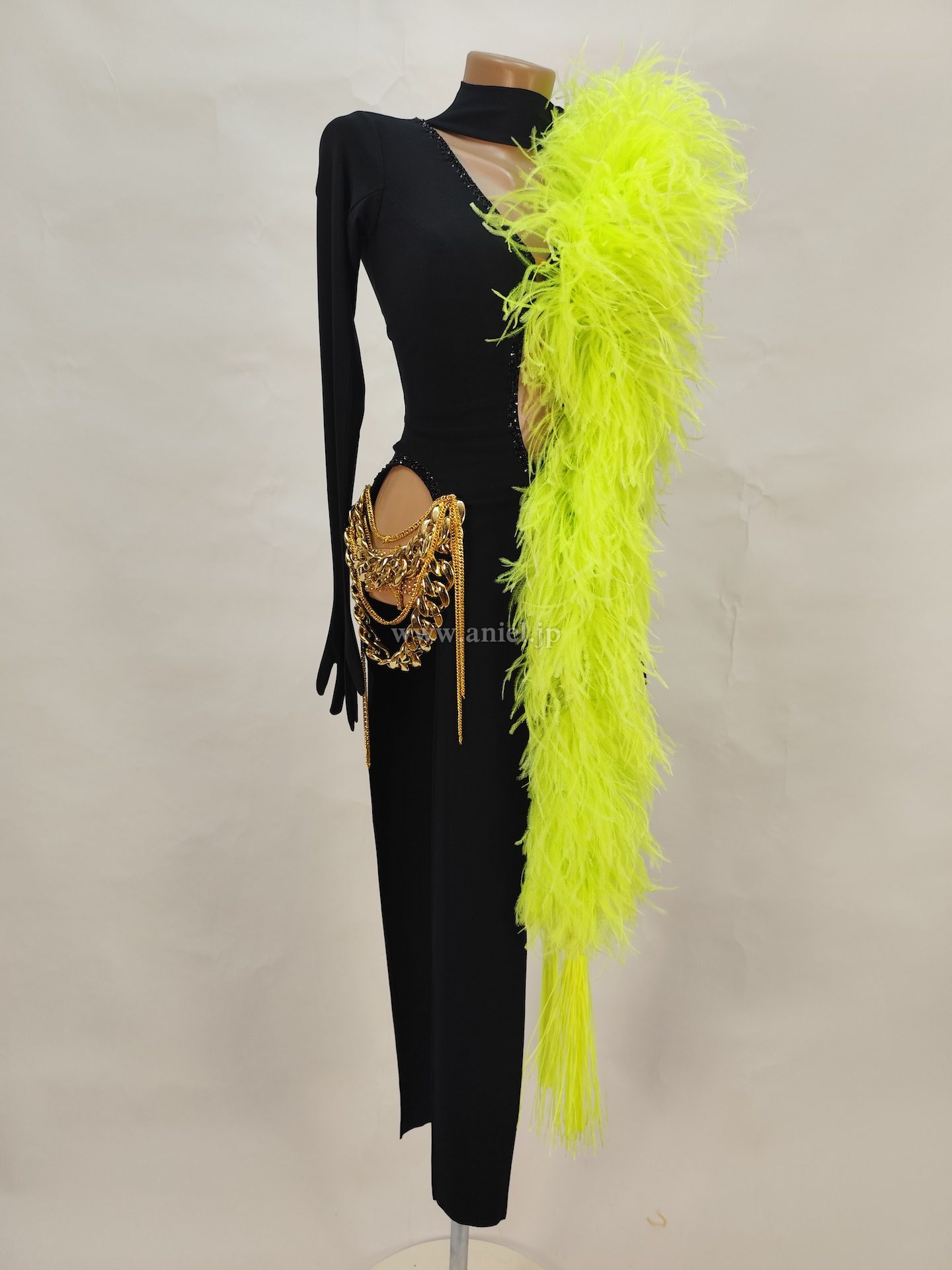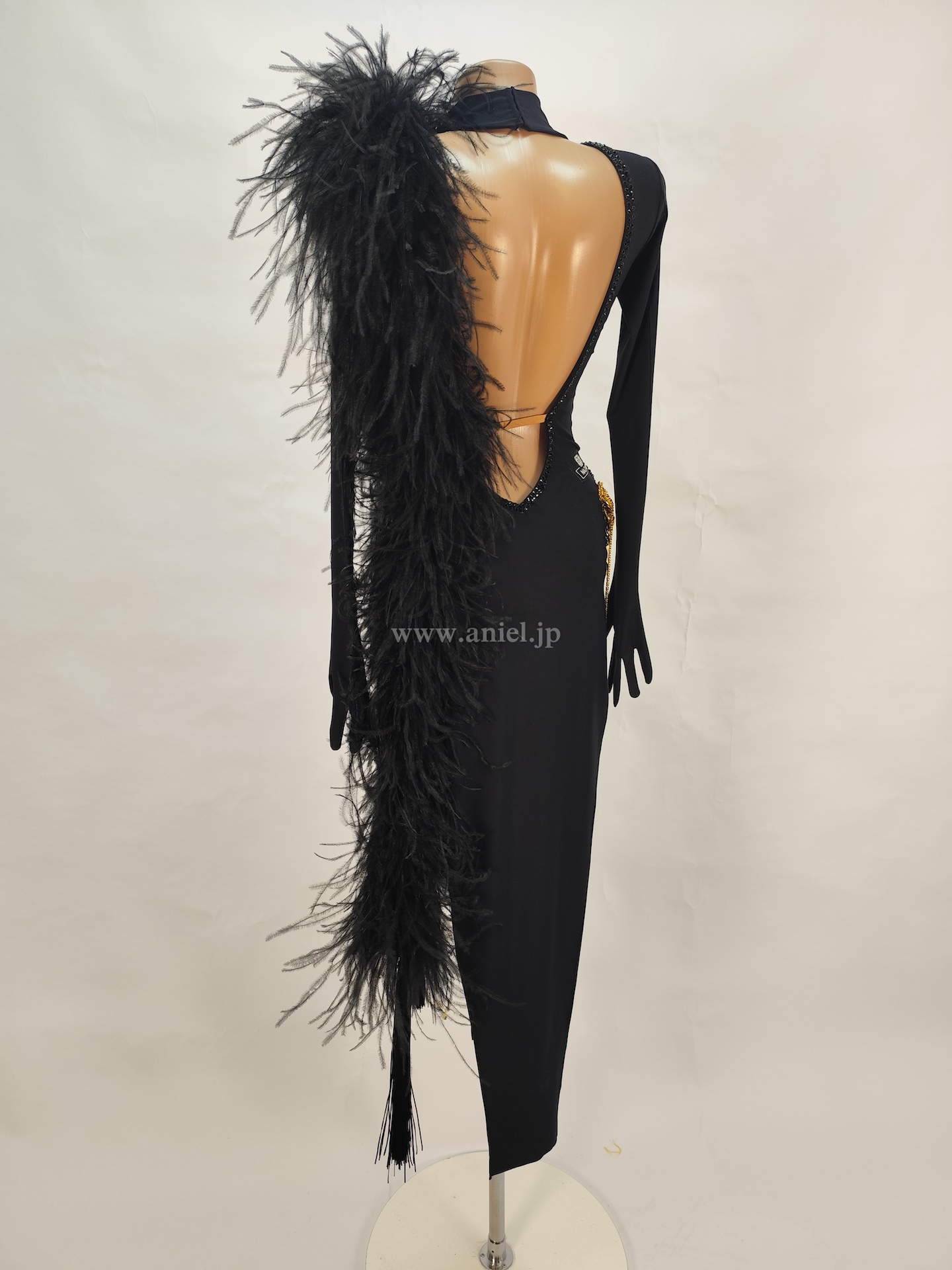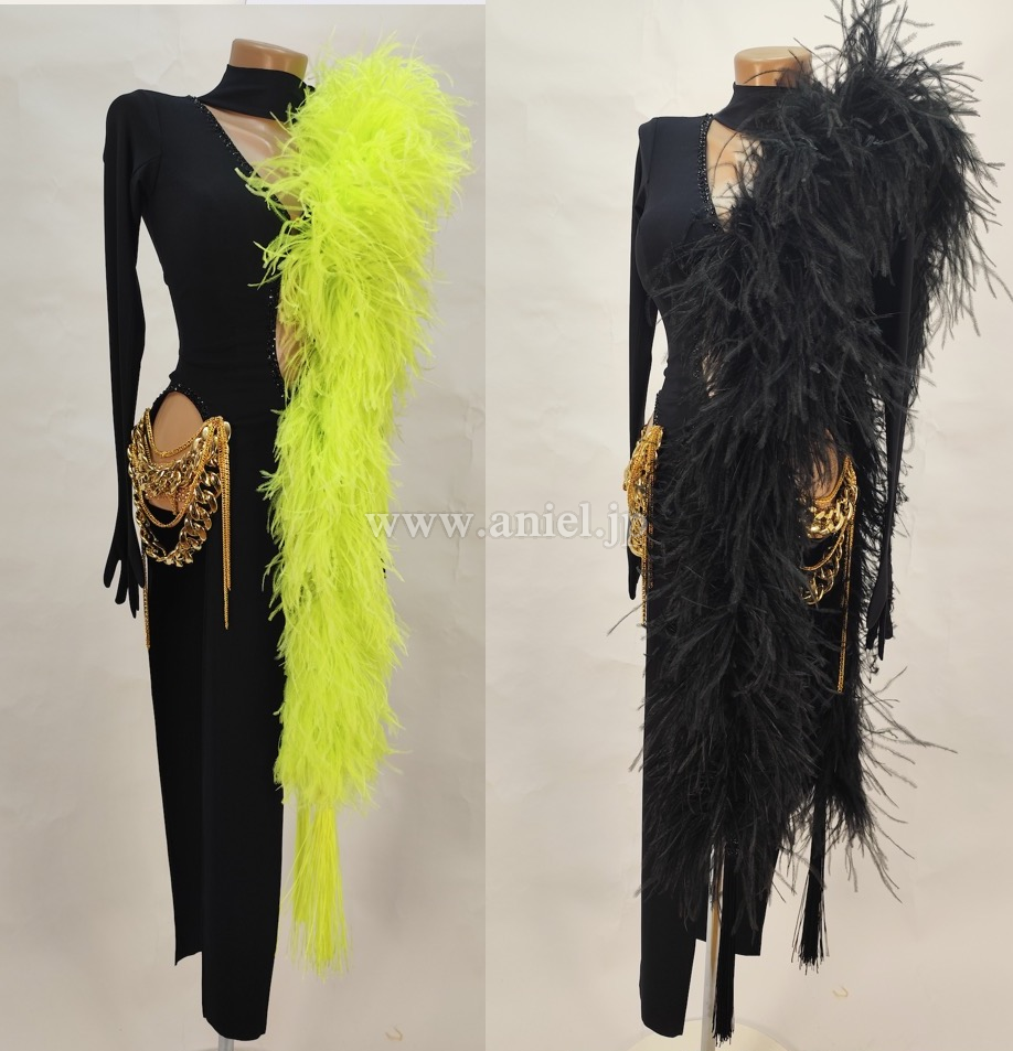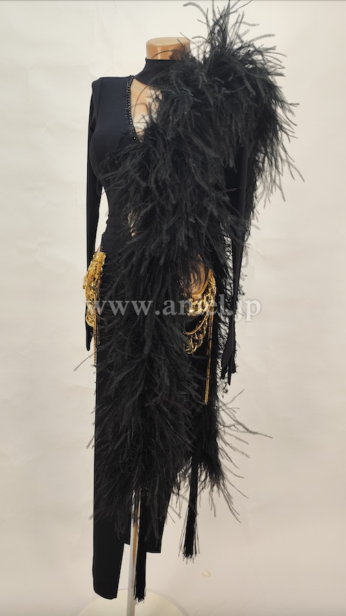 黒にゴールドの装飾がカッコイイデザインのドレス。