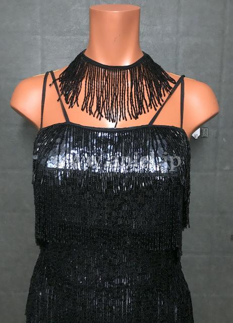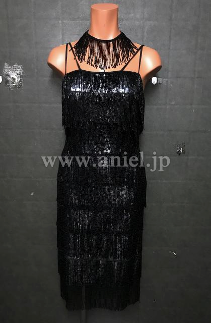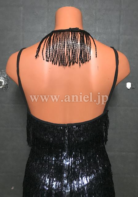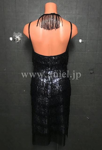 スパンコールのボディにビーズフリンジがたっぷりでキラキラと光るドレスです。