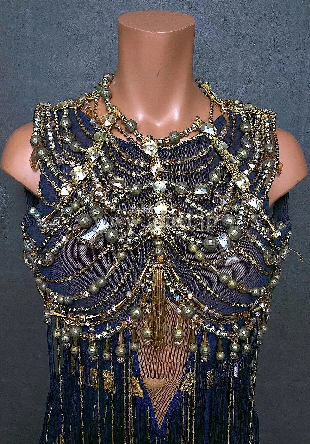 大人っぽいネイビーにゴールドの装飾が豪華にあしらわれています。