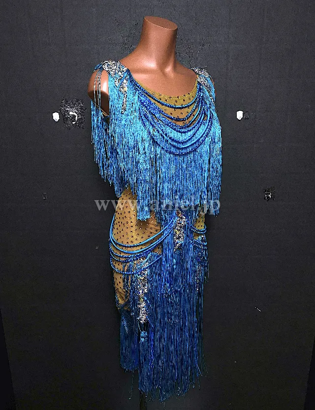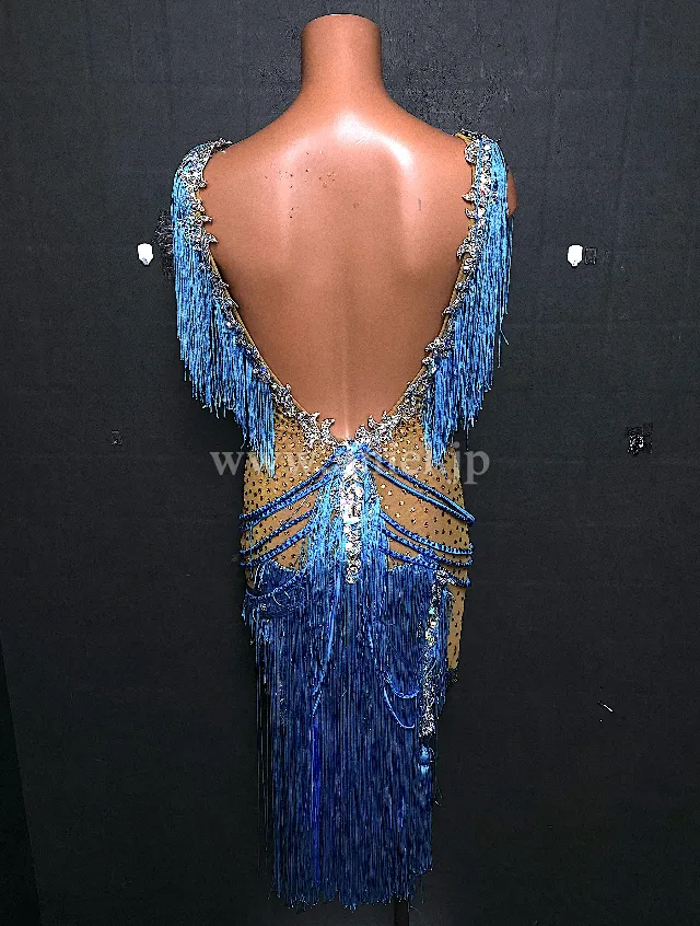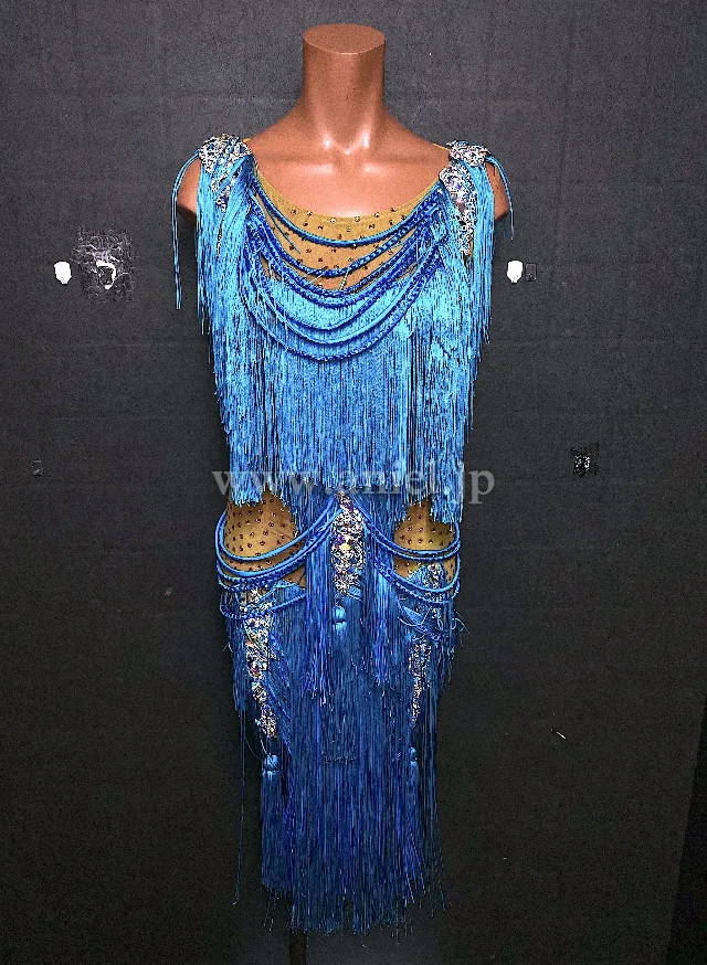 綺麗なブルーのフリンジドレス。